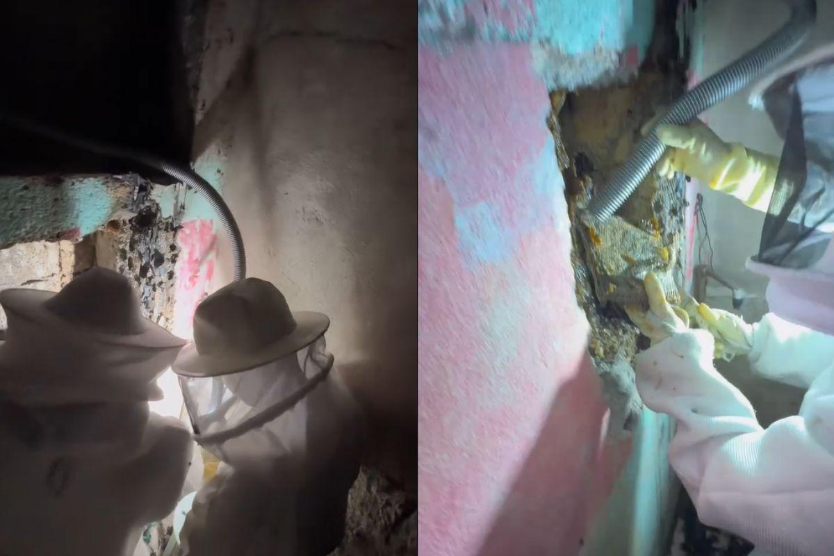 Colmeia de 1,70m é retirada de muro de casa em Guarujá; abelhas atacaram população