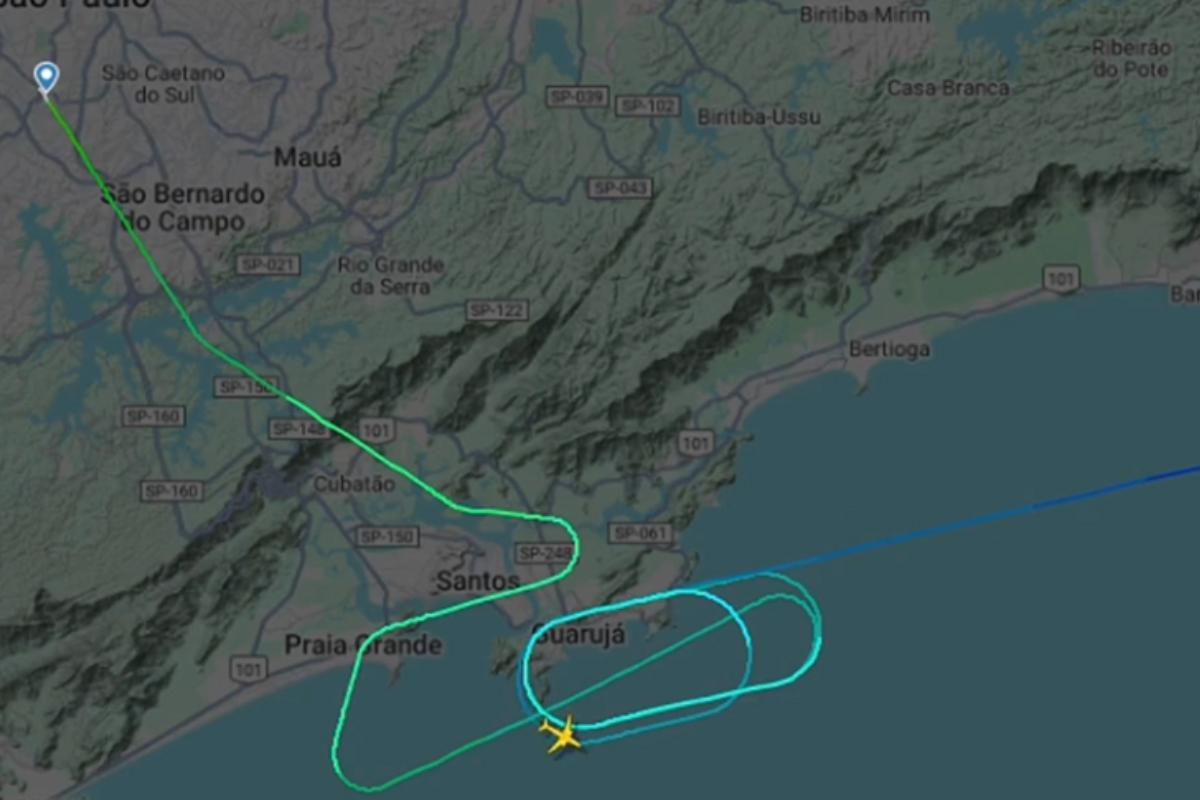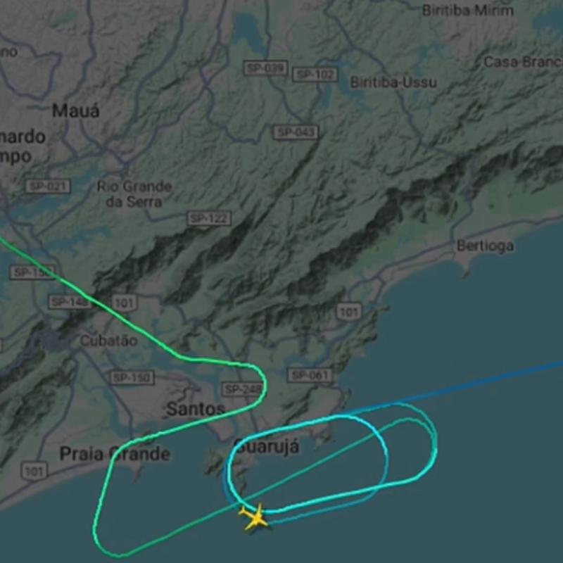 A aeronave também passou por Praia Grande, São Vicente, Santos e Cubatão; entenda o que houve
