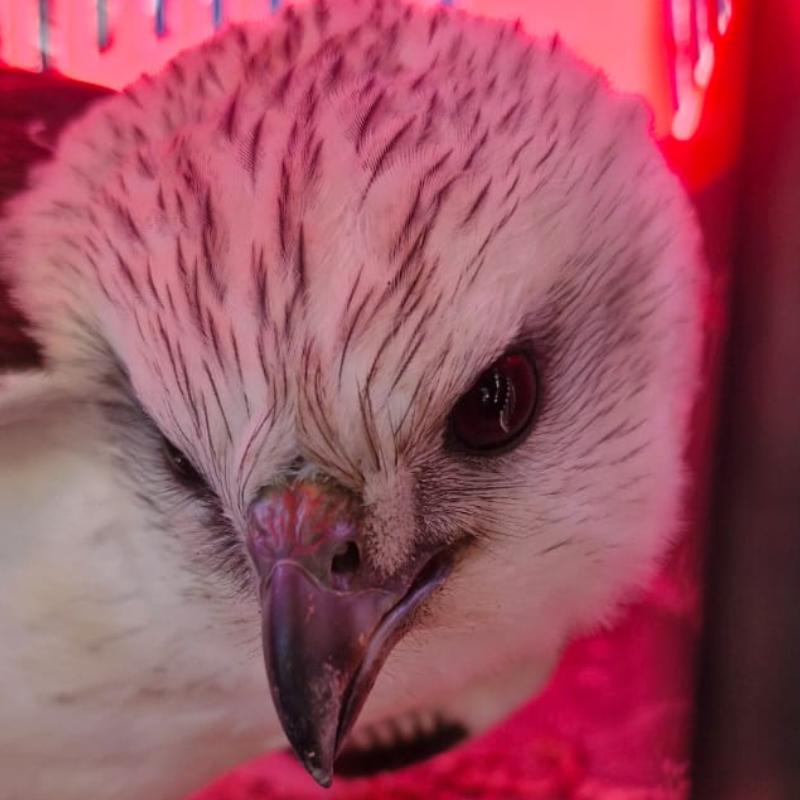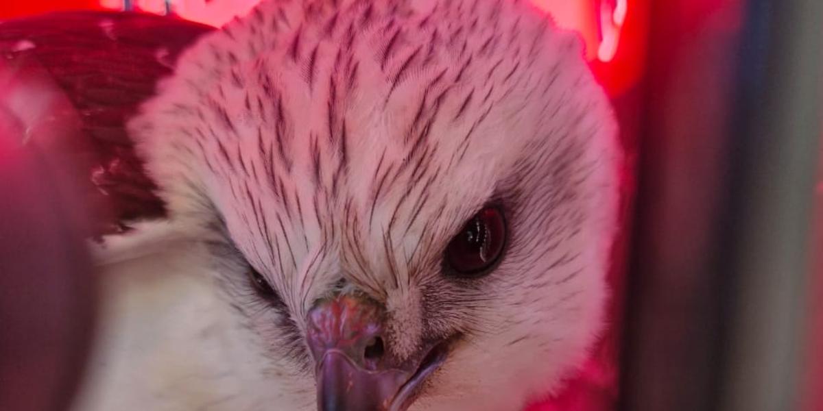 Gavião se choca em vidraça de condomínio em Guarujá, no litoral de São Paulo