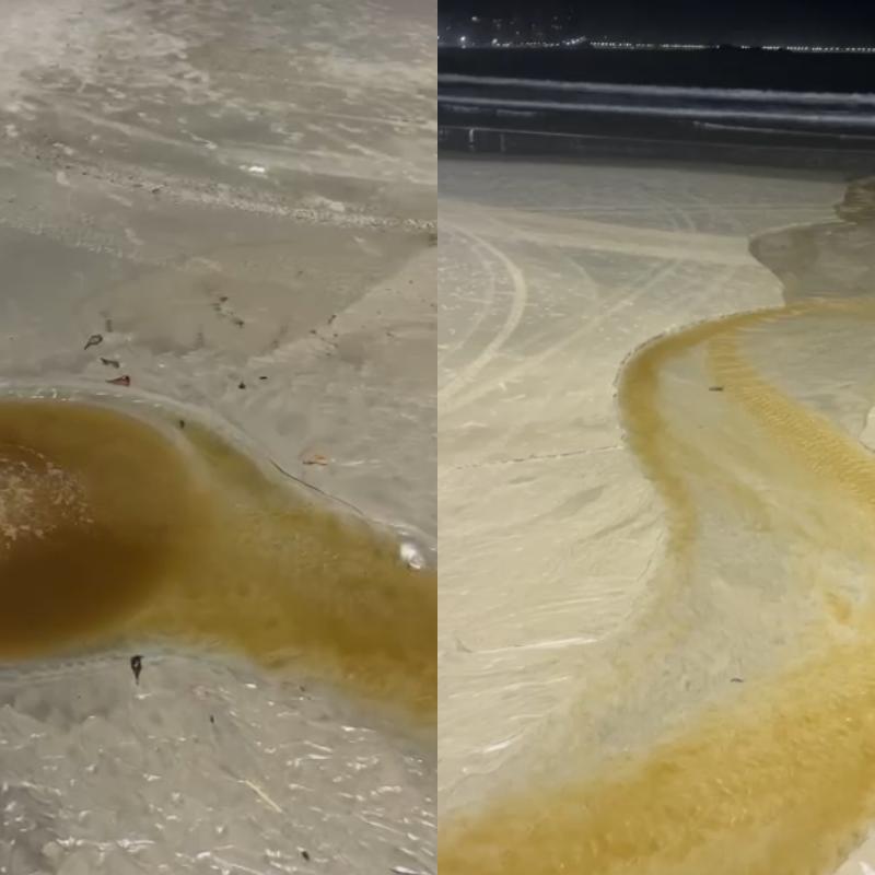 Mancha escura chama atenção em praia de Guarujá, no litoral de São Paulo, e mobiliza autoridades