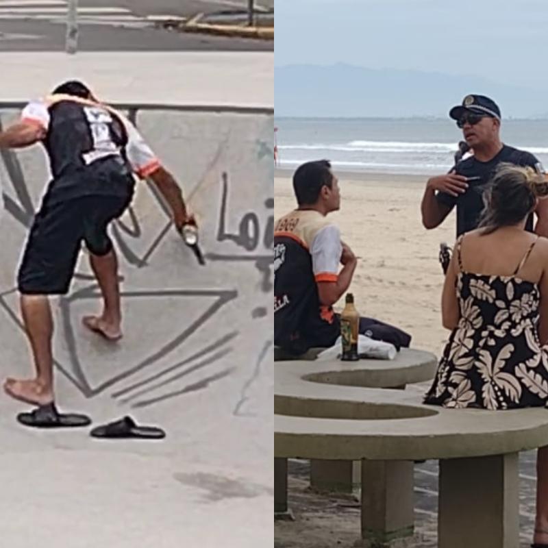 Homens picham pista de skate e são levados à delegacia na Baixada Santista