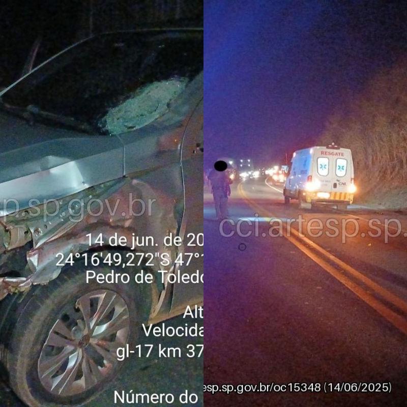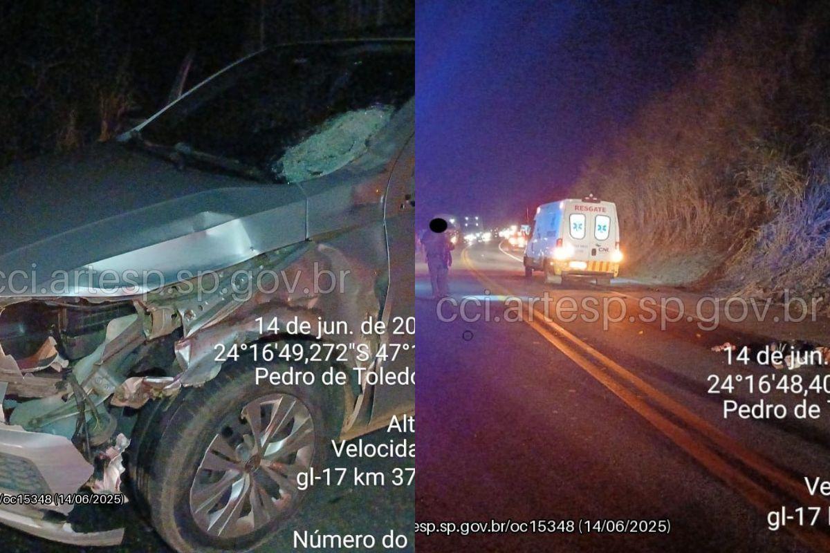Motociclista morre após invadir pista contrária de rodovia e colidir com carro; garupa teve fratura exposta