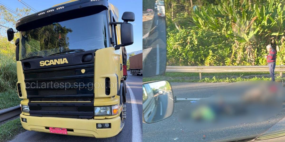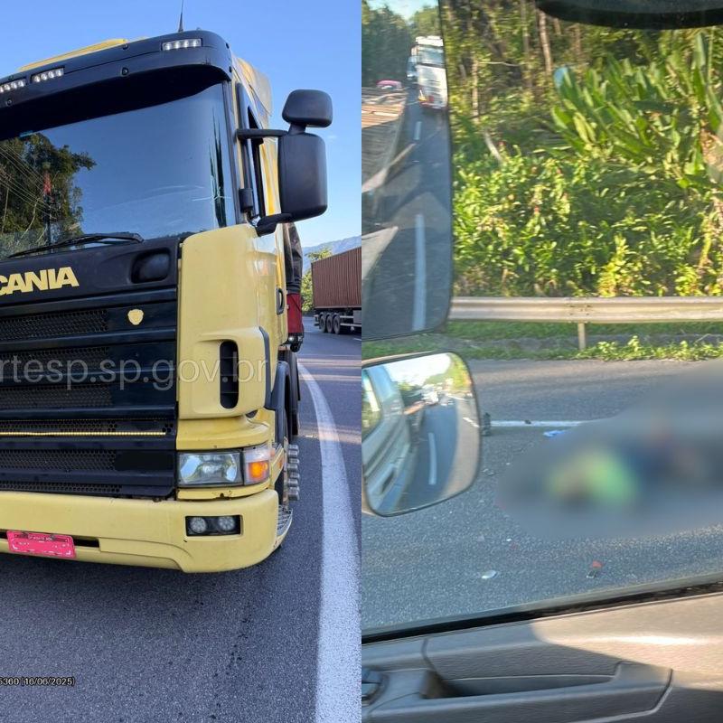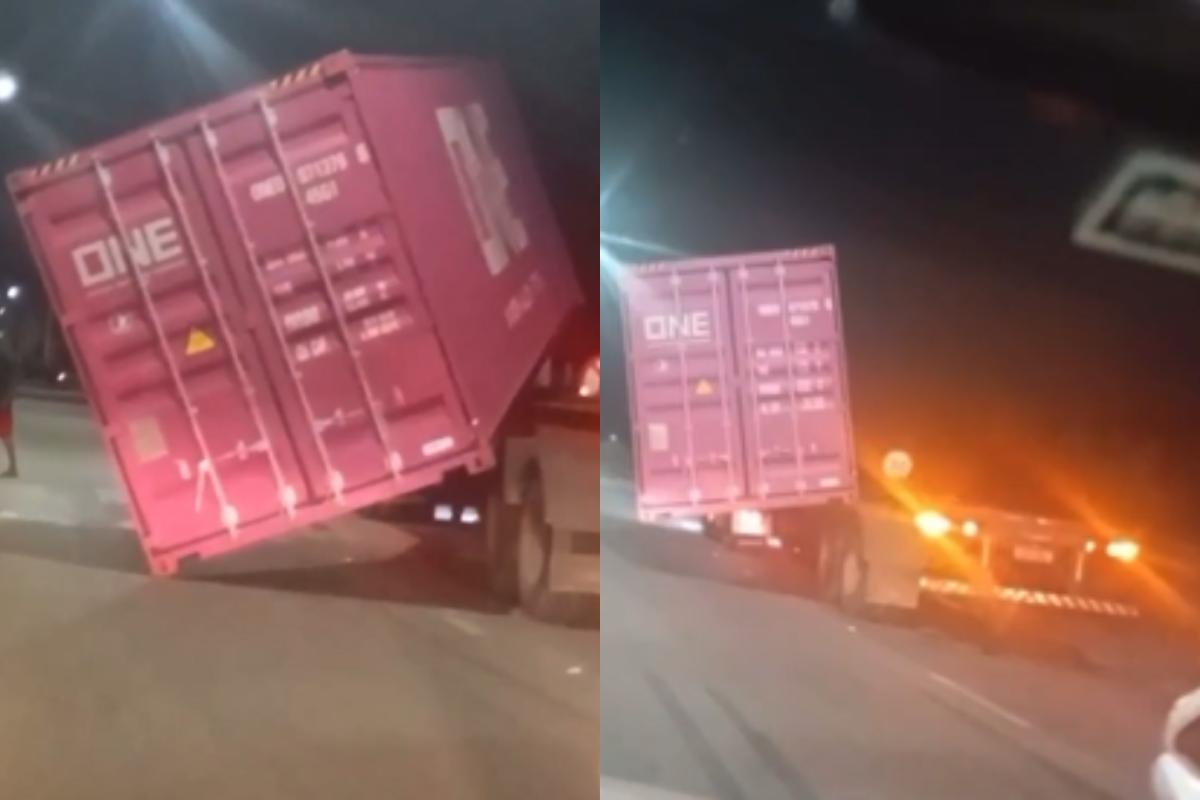 Contêiner se solta de carreta e causa interdição em rodovia de Santos
